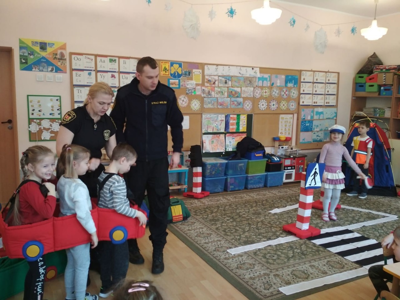 Dnia 3 lutego oddziały przedszkolne wzięły udział w zajęciach prowadzonych przez Straż Miejską. Dzieci utrwaliły sobie wiadomości dotyczące bezpiecznego poruszania się po drodze. Po krótkiej pogadance dzieci mogły wczuć się w role uczestników ruchu drogowego. To była wspaniała przygoda. Dziękujemy!